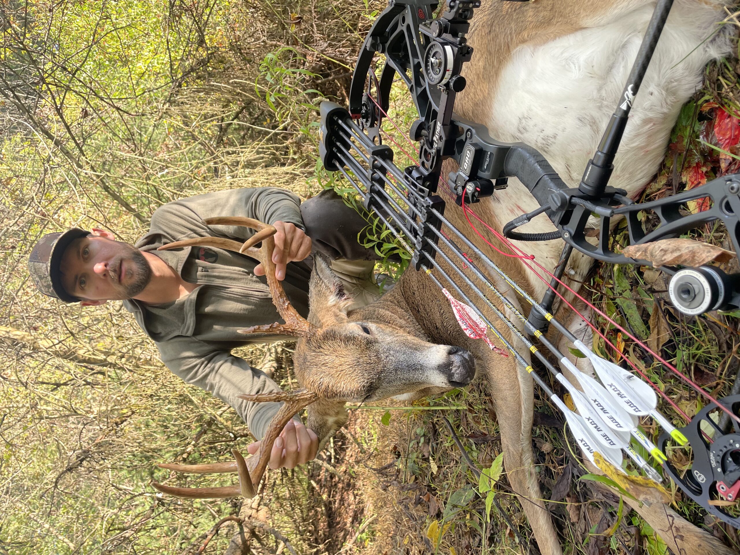 Harvest Story: First sit at a new spot. Shot him on 10/7 in the evening. Good blood for 100 yards then spots after. Backed out. Went back 10/8 in morning and couldn’t get back on blood. Grid searched and found him 600 yards away still alive. Had to finish him off.