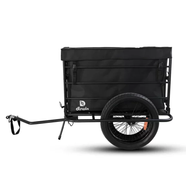 Its durable construction ensures reliability on rough trails, while the spacious cargo compartment offers ample storage for camping gear, groceries, or other essentials. The trailer features an easy-to-use hitch system that securely attaches to the rear wheel of your Dirwin electric bike, providing a stable and smooth ride.