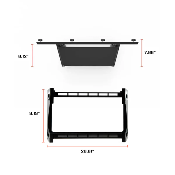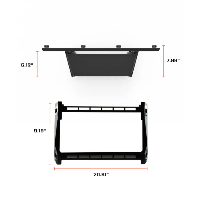 External Dimensions: 9"H x 21"L x 6"W, 8"W
