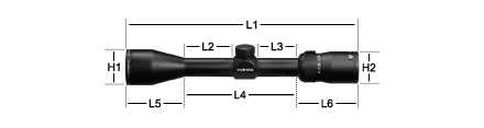 Diamondback 4-12x40 Dimensions (in inches)